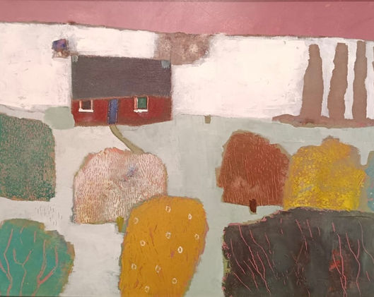 He is a self taught colourist, painting mostly landscapes and still life subjects. The inspiration comes mainly from West Wales, both the coast and inland. He uses colour to impart emotion and memory, and he frequently revisit the same places. In this way, an imprint forms which becomes a starting point. He prefers to paint the cooler months, and is drawn to remote scenes. He hopes that his work will resonate with some people, and be able to reflect something they also felt about the landscape.
