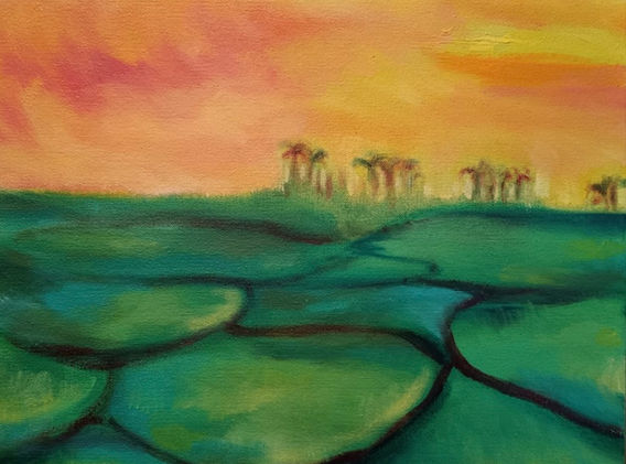 I live in beautiful Pembrokeshire, West Wales, and I graduated from Norwich School of Art and Design in 1997 with a BA Hons in Fine Art Painting. After a long period carving out life experiences; travelling and living abroad, having children, I applied for the MA in Fine Art at Aberystwyth University in 2013. I completed the MA in 2016 and I graduated in July 2017. Taking this step back into my creativity allowed me to discover a new visual language, and took me into an exploration of my own psyche. My work is concerned with motifs which represent a symbolic metaphor to me personally, and the process of painting. The more I allow the painting process its own autonomy the more I hear what the painting is telling me. Painting has become about trusting the creative process and allowing the painting to emerge organically. The motifs I use range from the forest, the fox, the boat, the Lookout building (near Strumble Head lighthouse), and most recently St Non’s chapel near St Davids in Pembrokeshire.